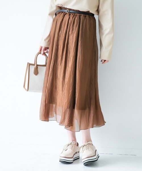【デザイン】 ウエストは360°ゴムなので、身動きがとりやすいデザイン♪ ふんわりと柔らかな素材は歩くたびに裾がふれ、はくだけで華やかな印象です。 【素材】 程よい光沢感があり、動くたびにきらめきます。 柔らかな素材なので、長時間履いていても気疲れしないアイテム! 【スタイリング】 トレンドのパーカーやマウンテンパーカーのカジュアルアイテムとも相性◎ 王道のきれいめスタイルでは、スリムなトップスを合わせての着こなしがおすすめです。 ※屋外の光や照明の当たり具合で、実際の商品と画像の色味に違いが発生する場合がございます。