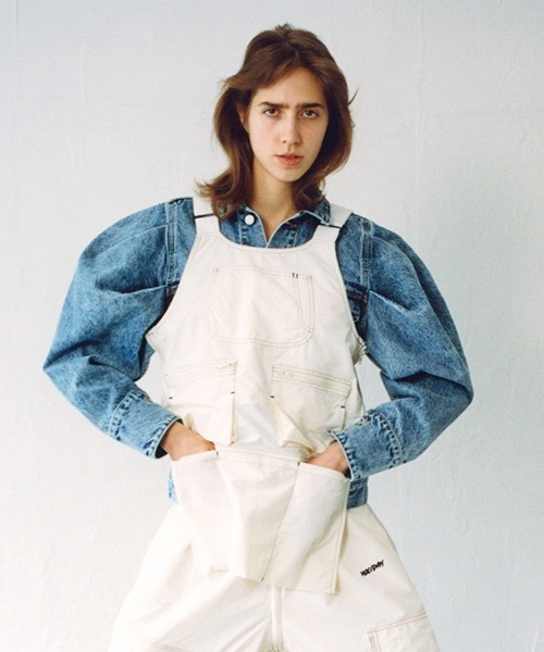 速乾、軽量、防風性に優れたオールシーズン着用可能なナイロン100%のアウトドア素材を使用したワークベスト。スナップボタンがついているので同じシリーズのボトムスと繋げてつなぎとしてスタイリングできます。配色のステッチ がポイント。バックにragelow氏により描かれたロゴプリント入り。両サイドはジップになっています。下ポケットは 折りたためる仕様のため着丈を変えて着用できます。