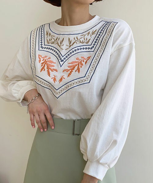 コーディネートの主役になる刺繍Tシャツ! パフスリーブで可愛い一着です♡ ※WEARに記載してある金額と、DHOLIC通販サイトに記載してある金額にシステム都合上、稀に誤差が生じます。正しい金額はDHOLIC通販サイトに記載された金額です。