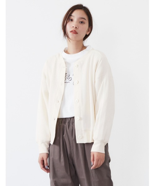 ふっくらと編み立てられた軽さが魅力のワッフル素材。ポリエステル混のしっかりとした生地感もポイントです。裾や袖のフライスは太めに仕上げてメリハリをつけ、ヴィンテージライクに仕上げました。POU DOU DOU プードゥドゥひと手間加えた存在感のある「日常着」いつまでもときめきとかわいいを忘れない方への愛着を持てるワードローブ