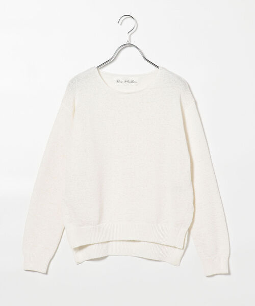 ◇Rie Miller◇ 定番のテープヤーンニット。 シワになりにくく、手洗い可能で早めの時期から着用していただけます。 今回はサイドに深めのスリットがあり、前だけインして着用することができます。 インナーやボトムスとのレイヤードも楽しめる1枚です。 ●お取扱い上のご注意● アテンションタグを必ずご確認の上、着用又はお取り扱い下さい。 ※手洗い可 《スタッフS.T》 身長:145cm/普段サイズ:S/着用サイズ:38 サイズ感:ドロップショルダーだが、生地がしっとりした落ち感が出てオーバーに見えすぎない。 素材感:サラッとしている。少しシャリ感がある。 着心地:ざっくり編んであるがしっとりして暖かい。 《スタッフI.S》 身長:156cm/普段サイズ:36/着用サイズ:38 サイズ感:ピタッとせずゆとりが少しある。前後差もありすっきりと合わせられる。 素材感:シャリ感があるのでサラッとしている。 着心地:ざっくり編みだが透けにくくインナーも合わせやすい。
