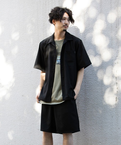 〈セットアップ商品〉春夏を快適にする爽快な着心地に、トレンドを押さえたオーバーサイズのシャツセットアップ。抜群の着心地をもたらすストレッチ性に加え軽快な生地感。トップスはゆったりとした開襟シャツ、ボトムは太めのシルエットに膝丈が今の気分のワイドショーツ。セットアップコーディネートはもちろん、それぞれ単品で使える抜群のコスパを誇るセットアップです。 ※こちらの商品は一部店舗限定で販売している商品です。取り扱いのない店舗もございます。予めご了承ください。