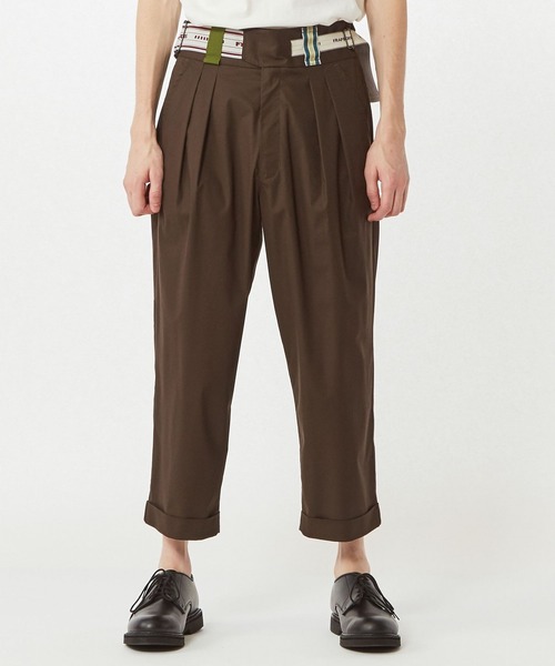 「グルカパンツ」をモチーフにベルトのディティールでフラボアらしくデザインしました。軍パンをモチーフにしながらも、綺麗目な大人な印象に仕上がっています。 春先から初秋まで着用可能な清涼感ある生地を採用しました。 トップスをパンツインした着用もオススメです。 クリーンなコーディネートに向いているベージュと、ネイビーやブラックとの相性が良いブラウンの2色展開です。
