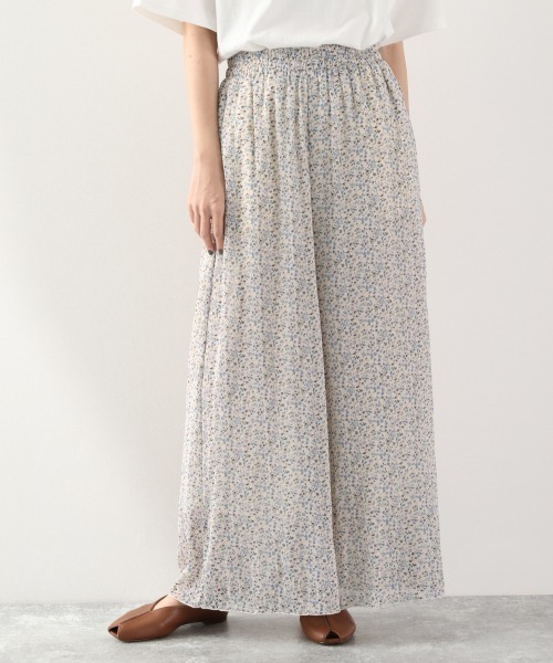 人気のプリーツ加工を施したシフォン素材のワイドパンツ。シフォン素材の軽さと柔らかさが女性らしさを演出してくれます!!裏地がしっかりついていいるので、透ける心配もありません。今の季節はフラットシューズ合わせで、暖かくなればサンダル合わせもおすすめです!!!
