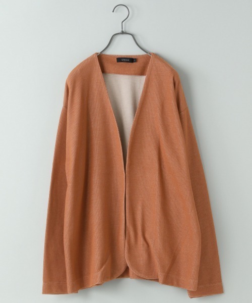 首元すっきりなノーカラー仕様のカーディガンが登場。全体的にゆったりとしたシルエットで、程良いゆったりとしたサイジングに仕上がっています。また、裏地には挿し色のカラーを使いアクセントを加えた拘りの逸品。