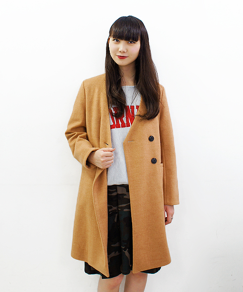 Ladies'2014 A/W 先行予約受注会!! トレンド&ベーシックアウター全5型♪♪ ピーコートのようなダブルボタンのロングウールコート☆ カジュアルにも、タウンにもコーディネートできる優れものアウター◎ 程よいボリューム感を出したシルエットにギャップ感のあるエッセンスを加え襟元はノーカラーに!! 定番のベージュ、ネイビーはスタイリングを選ばずに使え、ホワイトカラーは、独特の柔らかさで女性らしく着飾ってくれます♪♪ 素材にはウールを使用し、裏地にもポリエステルを完備してますので、冬まで使える長持ちな1枚です☆★ ワンピとの相性も抜群です!! ※画像の商品はサンプルです。 実際の商品と仕様、加工、サイズが若干異なる場合がございます。