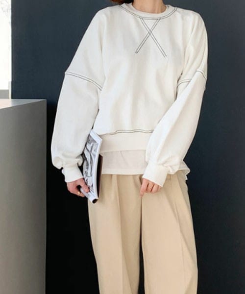 春コーデにかかせないスウェット! ステッチがポイントでTシャツとのレイヤードが◎ ※WEARに記載してある金額と、DHOLIC通販サイトに記載してある金額にシステム都合上、稀に誤差が生じます。正しい金額はDHOLIC通販サイトに記載された金額です。