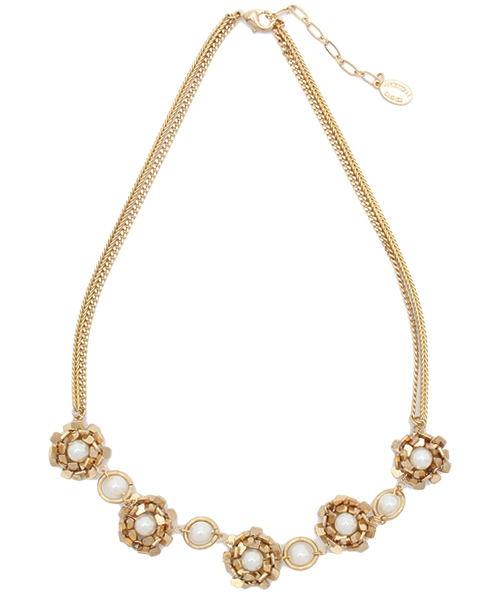 お花のように巧みに組み合わせたモーチーフがエレガントなネックレス。 華やかな表情たっぷりのデザインで、いつものコーディネートをリュクスに彩ってくれそう。 ブレスレットとセットで身に着けても◎