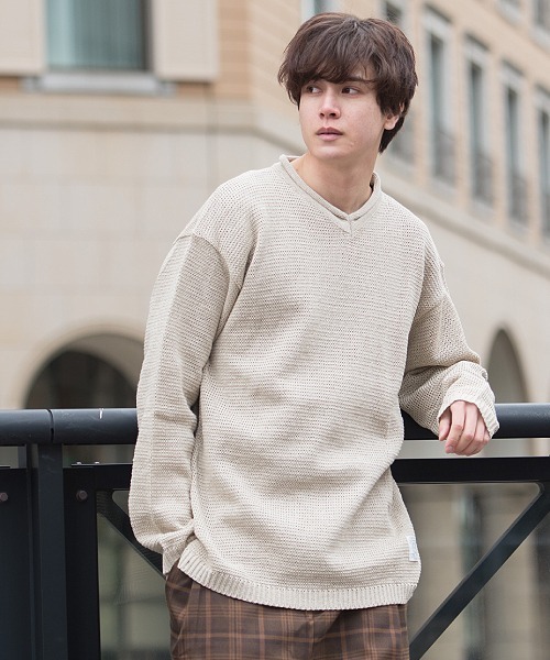麻のようなさらりとした爽やかな風合いを表現した「ギマコットン」を使用した日本製の7ゲージVネックニットです。 ギマコットン(擬麻(ギマ)コットン)とは、イミテーションの麻という意味で、麻に似せた綿の事を言います。 糸染めの段階で特殊な加工を加えたもので、麻の持つ清涼感やハリ感、ドライタッチな肌触りをしっかりと表現した素材です。 一目ごとに度目を詰めたり、甘くしたりして編んだ「度違い」という編み地で7ゲージで編みながらも5ゲージっぽい雰囲気です。 その為、製品の肉感はありながらも重すぎず、若干の透け感があり応用の効くアイテムになっています。 ネック部分はロールネックタイプの浅めのVネック、裾部分の両脇はスリット入りになっているので、レイヤードコーディネートでも使いやすい仕様になっています。 こだわりの素材選び、編み、シルエットなど国内工場ならではの質の高さが感じられる一枚です。 日本製(Made In Japan) GIMA COTTON ~ギマコットン~ 擬麻(ギマ)コットンとは、イミテーションの麻という意味で、麻に似せた綿の事を言います。 麻の持つ清涼感やハリ感、ドライタッチな肌触りをしっかりと表現した素材で、春夏に最適な素材です。 ※着用、お取り扱いの際は商品についておりますアテンションタグ、洗濯ネームを必ずご確認ください。 ※店頭及び屋外での撮影画像は、光の当たり具合で色味が違って見える場合があります。 商品の色味はスタジオ撮影の画像をご参照ください。 ※商品の色味につきまして、お客様のお使いのPCのモニター環境により実際のカラーと画像の色味が違って見える場合が御座います。予めご了承の上、ご注文下さい。