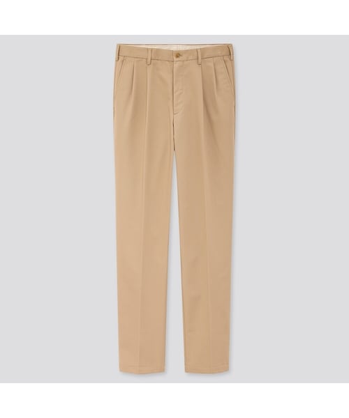 ゆったりラクにはけるツータックパンツ。シワになりにくく、お手入れがラクなのもうれしい。