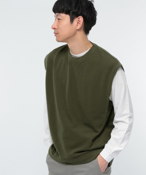 グッと旬なスタイリングに仕上げてくれるベストアイテム。 ニット素材よりも扱いやすく、よりカジュアルなカットソー素材で仕上げました。 【素材】 人気の高い、サカリバ(ニット×カットソーのダブルフェイス素材)を使用。 まだ寒い時期から春まで長くお使いいただけます。 【スタイリング】 カットソーにレイヤードするだけで、簡単にスタイルが完成。 上級者の方は、シャツとの合わせがオススメです。