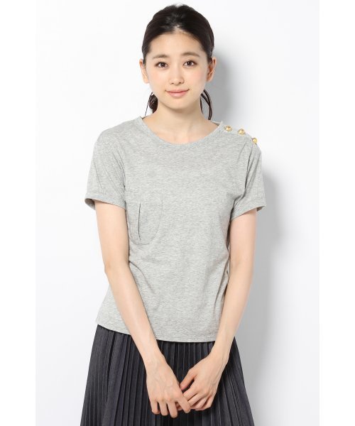 肩のゴールドボタンがポイントのミリタリーTシャツ。 デイリーにミリタリースタイルを取り入れられるように、程よいコンパクトサイズに仕上げました。 ゆるいボトムと合わせてリラックス感あるスタイリングもお勧めです。 ※期間限定セールより通常セールへと変更になりました。 ※店頭での撮影画像は、光の当たり具合で色味が違って見える場合があります。商品の色味は、スタジオ撮影の画像をご参照ください。 modelH166 B80 W60 H85 着用サイズ:FREE shop modelH166 着用サイズ:FREE