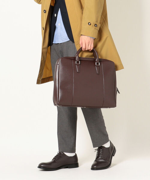 オリジナルの合皮ブリーフケース。 無駄を省いたシンプルなディテールが上品な表情を見せてくれる一品。 A4サイズの書類もしっかり入る広めの収納スペースと内側に様々なサイズの収納ポケットが備えられている為、使い勝手も◎! サイドまで開くファスナー仕様で荷物などを取り出しやすいのも嬉しいポイント! 取り扱いしやすい合皮を使っているのでプライスも魅力のひとつ。 ビジネスシーンに重宝されるオススメアイテムです! ※画像の商品はサンプルです。 実際の商品と仕様、加工、サイズが若干異なる場合がございます。 予めご了承下さい。