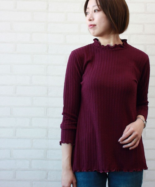 「大人可愛い」柔らかプルオーバー ▶point 柔らかで程よく伸びるカットソー素材を使用 ぴたっとし過ぎず、フリル仕様が女性らしさをアップ ケーブル柄の縦のラインがすっきり魅せ◎ ▶detail カットソー素材に凹凸感のある上品なケーブル柄を あしらったプルオーバー。 柔らかで程よく伸びるカットソー素材を使用し着心地◎です。 細かなケーブル柄が縦のラインをあしらい、 すっきり細見せが叶います。 ピタッとしすぎない美ラインシルエットと、 衿元、袖口、裾のフリルがエレガントな装いを演出します。 ▶fabric 温かみのあるカットソー素材に 凹凸感のある上品なケーブル柄をあしらいました。 縦のラインがすっきりと魅せてくれる1枚です。 柔らかで程よく伸びる生地感で、ぴたっとし過ぎずラクな着心地。 ▶coordinate 程よい丈感でパンツからスカートまで、 合わせるボトムを選ばないプルオーバーです。 ジャケットを羽織ればオフィスや通勤シーンにも◎ ジャンパースカートやシャツワンピースの インナーにもオススメです。 ▶scene ラクな着心地なので、お部屋着に、 ジャケットのインナーとしてオフィススタイルに、 ジャンパードレスやワンピースとレイヤードして 大人カジュアルスタイルに、 着回し力が高く、オンオフ問わず活躍する優秀トップスなので、 秋口から春先までロングシーズン重宝します。 ●長袖 ●ハイネック(フリル) サイズ:M、L、XL(LL) カラー:オフホワイト(オフ白)、ブラック(黒) 杢グレー モカ(杢モカ)、パープル系その他(ラズベリー) ※嬉しいプチプライス!まとめ買い&色違い購入もオススメです。 --------------------------------------------------------------------- ※サイズ寸法は実際の寸法と多少の誤差がある場合がございます。 ※ご覧いただいているPC/WEB環境や撮影環境により、 多少色味が異なって見える場合がございます。 【お買物をよりお楽しみいただく為に】 ▼商品のお気に入り登録をおすすめします♪ 『♥をクリック!』 完売カラーの再入荷やラスト1点の追加、 セールの際の通知を受ける事ができます。 ブランドのお気に入り登録もご一緒にお願い致します。 --------------------------------------------------------------------- 洗濯:洗濯機使用可(ネット使用)