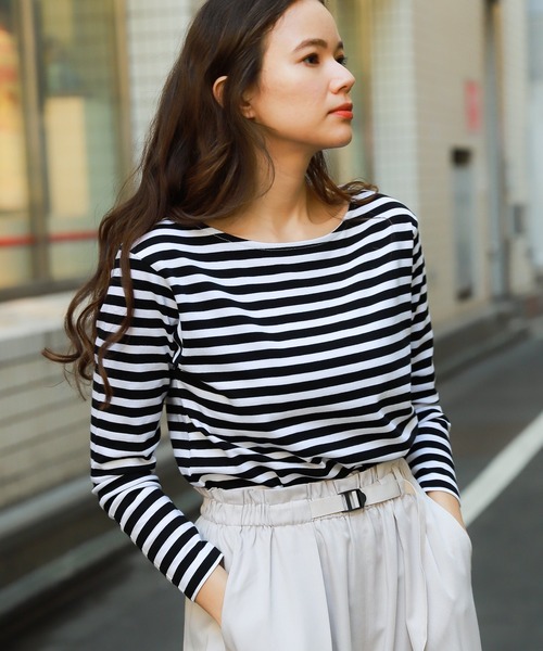 made in Indiaのオーガニックコットンを使用したロングスリーブプルオーバー。デコルテまわりがきれいに出るボートネックで、シンプルながら抜け感のあるデザインです。肌触りが良く着回しもしやすいボーダーTシャツは、今シーズンも活躍間違いなし。ボトムスとカラーをリンクさせるとまとまりが出て、大人っぽく着こなせます。●オーガニックコットン使用インド原産のオーガニックコットンは、手摘みで繊維長が長く、無農薬、化学肥料を使わず生産された綿花を使用しています。吸水性、吸湿性、放湿性に優れており、素材にハリやコシ、艶があるのが特徴です。地球環境や農家に優しいだけではなく、着る人の体にも優しいサステナブルな商品となっています。※屋外の光や照明の当たり具合で、実際の商品の色味とカラー別画像の色味に違いが発生する場合がございます。 商品の色味はスタジオ撮影の詳細画像にてご確認ください。