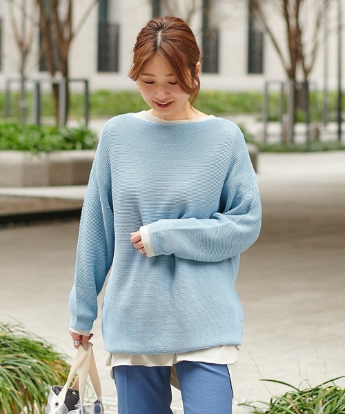 \手洗い可能な万能春ニット/ボートネックで首元空きすぎず、シンプルな春ニット。手洗い可能なので、デイリーに使いやすいトップスです!シンプルデザインで、ヒップラインの隠れる丈なので、ボトムもスカート・パンツ、ライン関係なく合わせて頂きやすいです。二の腕部分も幅をとっているので体系カバーも◎肩を落としてワンショルダーで着ていただくと、こなれた印象に♪*********************・首元の空きすぎない、大人なボートネック・手洗い可能・シンプルで体系カバーも叶う万能春ニット*********************