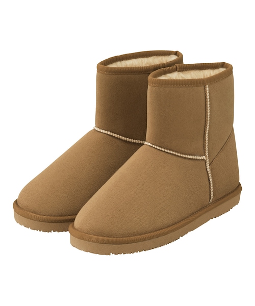 裏ファーがあたたかく、はき心地も快適なムートンタッチブーツです。スカートにもパンツにも合わせやすい丈感に設定しました。撥水機能付きでお手入れも簡単。取り外し可能なインヒールを備えています。