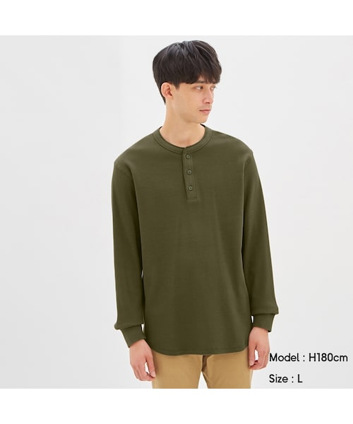 さりげなく首元を印象づけるヘンリーネックTシャツ。肌への接地面が少なく、汗をかいても快適な肌触りを保つワッフル生地を使用。凹凸のある特有な生地感が着こなしにさりげなく変化をプラスします。裾をラウンドさせてレイヤードスタイルのアクセントになるようデザイン。首元は生地で挟み込んだバインダー仕様なので、耐久性にも優れています。(XS・XXLサイズは、オンラインストアのみでの販売となります。)