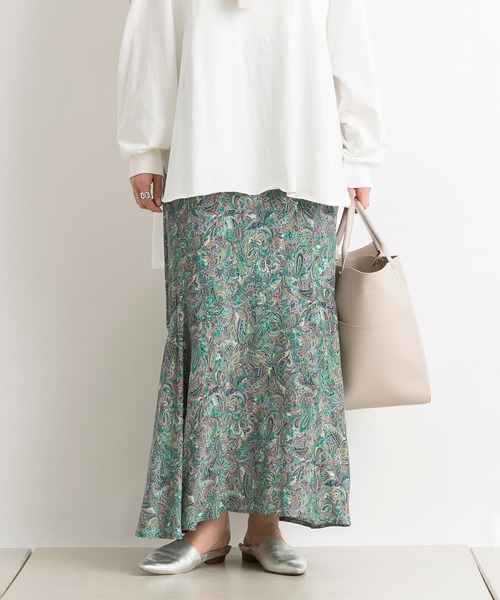 \ペイズリー柄がトレンドライクなスカート/ウエストから膝辺りまですっきりシルエットで、裾がフレアなシルエットが特徴的なペイズリー柄スカート。すっきりながら歩く度動きの出るシルエットが女性らしく、裾がフレアなので足さばきも楽です◎春夏にぴったりな華やかなカラー展開です。ウエストバックはゴム仕様。***********************・膝辺りからのフレアシルエットでスッキリ見え◎・春夏らしいカラー配色のペイズリー柄・ウエストバックゴム仕様***********************