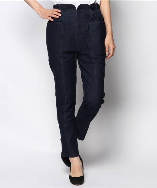 mystic(ミスティック) ハイウエストデザインが特徴的なデニム。ウエスト部分のカットデザインが可愛く、トップスをインして頂くとポイントになります。すっきりと履きこなせる1着です。