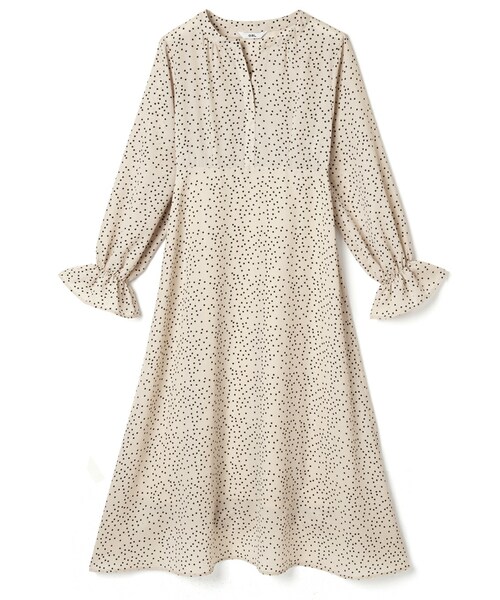 小粒のドット柄が大人キュートにキマるワンピース。 キャンディースリーブデザインがトレンドライクなポイントに。 ふわりと広がるフレアシルエットが清潔感をプラスする。 スキッパーカラーで大人な抜け感を醸し出す1枚に。 ★裁断の関係で、柄の出方が写真と多少異なる場合があります。 ★バックウエストゴム入りです。 ★スカート部分のみ裏地付きです。