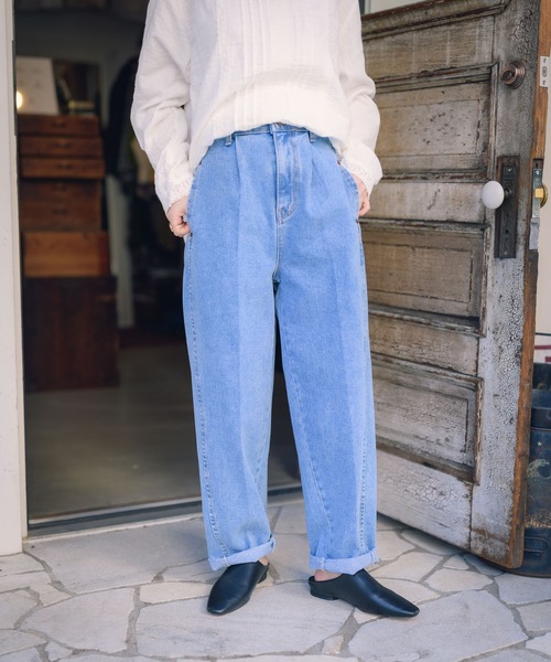 【Libra ハイウエストテーパードデニム】さりげないデザインとワイド過ぎない絶妙なコクーンシルエットでリラクシーな足長効果が叶うラフデニムパンツ《styling》いろんなアイテムと合わせやすいシンプルデニム。トップスをタックインして着用するとハイウエストデザインなので、脚長効果もあるスタイリングになります。落ち着いた色味でロングシーズン使えるのも魅力のひとつ◎合わせるトップスを選ばないデイリールックに取り入れたいアイテムです。《detail》ゆるめのコクーンシルエットデニム。腰まわりまでは程よいフィット感がありつつ、脚の肉感を拾わないシルエットでラインが美しいのがポイント。センターに入ったタックデザインと、両サイドに隠れたポケットでテーパードパンツのようなきれいめな印象をプラスしてくれます。《fabric》穿くほどに馴染む綿素材のデニムパンツ。ストレッチなし。※詳しいお手入れ方法は商品タグをご参照ください。【Libra】包み込むような着心地の良さと程よいモード感。エイジレスにファッションを楽しむ大人の女性に向けたRelax mode wear を提案します。【商品のお気に入り登録】完売カラーの再入荷通知やラスト1点の通知プライスダウンの通知も受け取ることができます。ぜひご登録ください◎【ブランドのお気に入り登録】新商品や再入荷など、ブランドの情報をいち早くお知らせします!ぜひご登録ください◎※ご注文いただいた予約商品のお届け時期確認は、注文履歴ページより行えます。