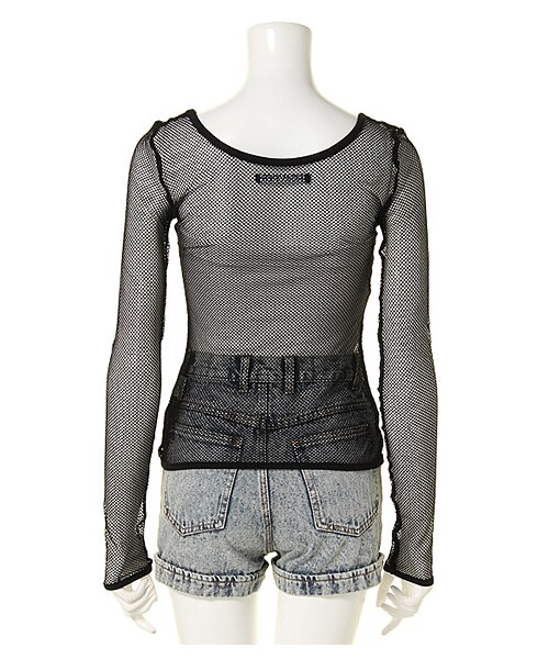 肌見せのシアーなルックスで、Sexyな視線を集めるメッシュトップス★どんなインナーを合わせるかがセンスの見せドコロ!インナーのジャマをしない、ワンカラーのシンプルなデザインも着回しやすさのヒミツ♪伸縮性のある生地感だから、着心地も◎