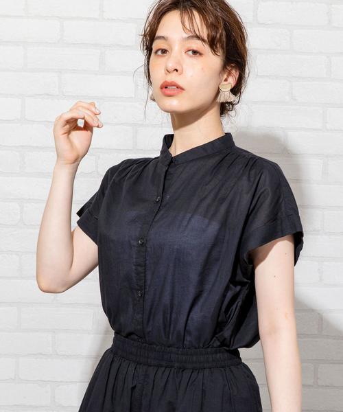 オフィスカジュアルにも対応する夏ブラウス インド綿ならではの"ふくらみ"と"清涼感"をあわせ持った、「ふわサラ感」が着心地のよい素材のバンドカラーブラウス。 折り返しているようなデザインの袖は、肩を覆うぐらいの丈に設定。 二の腕もきれいに見せてくれるので、大人にもうれしいディテールを盛り込みました。 ショルダーとバックには、たっぷりとギャザーを施しており、 ふんわりとゆとりのあるシルエット。 薄手のコットン素材を使用し、やや透け感のある見え方が清涼感を満喫できる一枚です。 【スタッフ着用コメント】 <<仙台パルコ2店・のださん>> 身長:153cm 女性 普段着用サイズ:S 試着サイズ:FREE ゆったりしていますがきちんと感があるブラウスです。インドコットン素材でサラッとしていて吸水性もあり、春から晩夏にかけて長くお使いいただけます。袖が短めでわきが少し空くように感じました。色により透け感があるのでグレーやベージュなどの響きにくいインナーを合わせるのがおすすめです。オンオフ使える好印象ブラウスです◎ 【注意点】 ※撮影商品はサンプルの為、実際の仕様と異なる場合がございます。 ※画像の商品は光の照射や角度、お使いのモニター環境により、実物と色味が異なる場合がございます。スタジオ物撮りの画像が実物の色味に一番近くなっております。 ※予約商品の場合、実店舗への入荷は「お届け予定」とほぼ同時期となりますが、実店舗への入荷が前後する場合もございます。 品名:FC インドコットン S/S BLS 品番:7615-603-0011