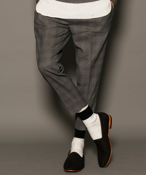 さり気ない格子柄が入った生地を使用。 ウエストがゴムシャーリング+スピンドル仕様のアンクル丈で トレンドのスポーティーなディテールを搭載しつつ品のある素材を使用しました。 裾には適度にアクセントになるファスナー仕様。 同じ生地を使用したジャケットも展開しておりセットアップで着用も可能です。店舗にてお問い合わせの際は、全国のBEAUTY&YOUTH 各店舗まで下記の品番をお申し付け下さい。品名:MT T/W/S ZIP EASY SLACKS 品番:1284-188-0229 ※画像の商品はサンプルです。 実際の商品と仕様、加工、サイズ、素材が若干異なる場合がございます。