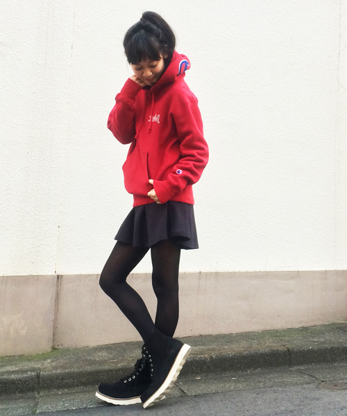 ★CHAMPIONコラボ第2弾★ 肉厚な脇リバースウィーブ仕様のプルオーバーは、胸にアウトラインのミルズロゴをオン!フードに他のアイテムと共通の大きめCマークのさがらワッペンをたたきつけてシンプルながらもX-girlらしいデザインに★ model:身長155cm 着用サイズ:1