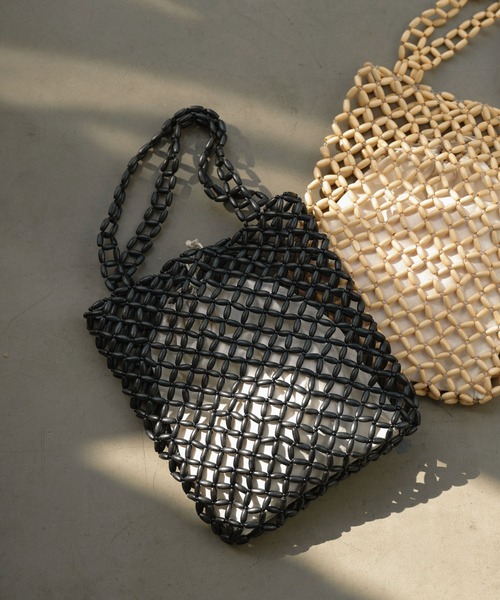 ナチュラルな風合いが可愛いビーズトートバッグ。カゴバッグに代わるナチュラル素材が注目の1品。持つだけでこなれた印象に。存在感のあるデザインでシンプルコーデにも映えるアイテムです。【素材・サイズ感】天然ウッドが滑らかな触り心地を生み出します。取り外し可能な巾着バック付きで中身が見えない作りになっているのも嬉しいポイント。