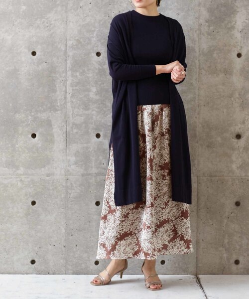 ナイロンブレンド素材の、軽くキレイ目な印象のハイゲージニットカーディガン。 ビッグシルエットの、ロング羽織りで様々なスタイリングが可能です。 程よい抜け感と、エアリーな素材感が、シーズン通して、着回せるオススメのデザインです。 たっぷりの着丈は羽織るだけで品のあるドレープシルエットがキレイに出て、大人の女性にぴったり。 同素材のリブトップス(A0105KSW015)とのアンサンブルスタイリングもおススメです。