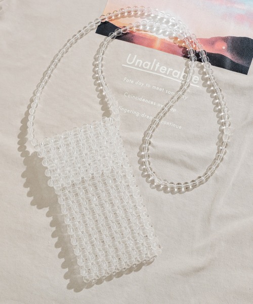 【2020SS natural couture】 ビーズの透け感で春らしい抜け感をプラスできるバッグ これひとつ取り入れるだけで、トレンド感も抜群、お洒落上級者に。デニムなどのカジュアルなパンツスタイルからフェミニンなワンピースまで、テイストを選ばず合わせられるのも魅力です。スマホやミニウォレットなどをさっと入れられる、ちょっとしたお出かけにぴったりなサイズ感◎コーデのポイントになること間違いなしのアイテム。