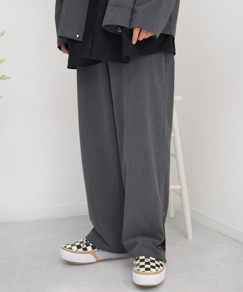テロっとした素材で全体的に程よい細さのスラックス。 裾にはジャケットと同じボタンがついており、セットアップで着用しても 統一感のあるコーデに仕上がります。 また、気分や足元でボタンを1つや2つ外しての着用も こなれ感アップのポイントなので是非ご参考にしてみてください! 中に着用しているシャツとの相性も抜群なのでチェックしてみてください! セットアップ着用可能なジャケットと合わせれば 春先のかっちりすぎないユルキレイ目スタイルに仕上げてくれ、 ローファーやスニーカーなど小物を選べば幅広く着こなしを楽しめます。 ジャケット検索番号→【871269】 シャツ検索番号→【871271】 ※ご覧いただく環境により、 実物と色味が異なって見える場合がございます。 ご了承ください。 【お買い物をよりお楽しみいただくために】 ▼商品のお気に入り登録(ハートマークをクリック) 完売カラーの再入荷通知や、ラスト1点の通知、セールの通知も受けることができます。 ▼ブランドのお気に入り登録 新商品や再入荷など、いち早くブランドのお得な情報を受け取ることができます。