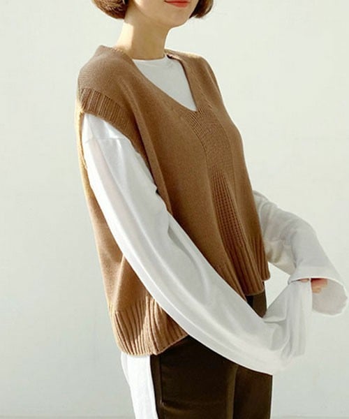 肩のラインが落ちたトレンディなニットベスト! ※WEARに記載してある金額と、DHOLIC通販サイトに記載してある金額にシステム都合上、稀に誤差が生じます。正しい金額はDHOLIC通販サイトに記載された金額です。