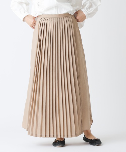 ◇すっきりとスタイリッシュなプリーツスカート◇前面のみにプリーツが施されているので、裾が広がり過ぎずすっきりとしたシルエットに。ボリュームあるトップスとの相性も抜群です◎ロング丈のクラシカルなデザインは着るだけでこなれたおしゃれな印象に。普段使いからフォーマルな場面にも。・すっきりとシルエットの前面プリーツ・ボリューム感のあるトップスとも好相性・普段使いからフォーマルシーンまで・サイドのシャツカットでよりこなれた印象に※撮影場所やお使いのモニター環境により若干お色味が異なる場合がございます。特にロケの撮影では明るく見える傾向にございます。※予約商品はサンプルで撮影をしております。若干の仕様が変更になる場合がございますので予めご了承の上ご注文くださいますようお願いいたします。