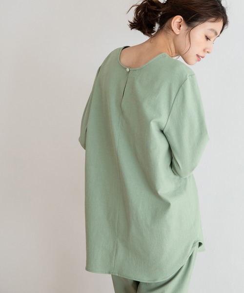 □2020 SPRING&SUMMER COLLECTION□◆春夏NO.1ヒットの高機能素材でつくった2WAYできるきれいめクルーネックブラウス◆<MATERIAL>15SSから継続して使用している春夏シーズンNo.1ロングヒット素材です。シェルタリングドライオックスはナチュラルな表情を持ちながら、その表情からは想像できないような機能とファッション性を兼ね備えた素材です。麻を加えて清涼感と凹凸のある組織に織り上げ、染色の前後2回タンブラーを施すことにより、ほどよくカジュアルな印象に仕上げています。光の透過を抑える異形断面の原糸を使用することで、白や淡色でも透けにくく安心して着用いただけます。また吸水、速乾性にも優れているので真夏でも汗の不快なべとつきを感じず、さらりとした快適な着心地を感じれます。加えてポリエステルメインの混率なのでしわにもなりにくく、またウォッシャブルでストレッチ性を持ち合わせている実用性において非の打ち所のない素材です。<DESIGN>前後着用できる2WAY仕様のシンプルなクルーネックブラウスです。カジュアルにもきれいめにも着れるデザインになまとめています。スリット側を後で着ると、キーホールがアクセントとなり、きちんと感と上品さを与えてくれます。スリット側を前で着るとキーネックのトップスとなり、顔回りをすっきり魅せてくれ、女性らしい印象になります。袖口はボタンあき開きで、シャツのようにロールアップしラフな着こなしも決まるデザインになっています。ゆるすぎないサイズ感はジャケットのインナーとしても着れ、オンタイムでも活用できるので、セレモニーシーンから通勤着まで、幅広い場面でお使いいただけるTブラウスです。ヒップが隠れる長めの着丈でラウンドした裾は、体形カバーを叶えてくれます。若干長めの着丈なので、パンツ合わせがおすすめです。同素材のパンツ(品番:MN201P42 / MN201P44)とセットアップで着用可能です。<COLOR>■ホワイト:真っ白に近いクリアなホワイトです。清涼感があり、インナーとしても着回し力抜群のカラーです。素材の特性で透け感はありません。■ブラック:墨黒に近いブラックでも柔らかい印象のカラーです。着やせ効果も高くスタイリングをシックにまとめてくれます。■ナチュラル:リネンのナチュラルカラーに近いカラーです。やさしい雰囲気が好きな方やナチュラルテイストがお好きな方におすすめです。■ライトグリーン:オトナっぽいくすみがかったようなライトグリーン。春夏らしい明るく華やかな印象がつくれます。■ライトカーキ:程よくスモーキーで女性らしいベージュ寄りのカーキです。合わせやすく、ダークカラーの引き締め効果も期待できるカラーです。*お取扱いについては、商品についております品質表示にてご確認ください。洗濯:洗濯機使用可.............................≪INFORMATION ≫............................▼商品のお気に入り登録▼『♡』マークを押してお気に入り登録して頂いた商品は、セール開催の通知やクーポン発行などのキャンペーンなど、お得な情報をいち早く受けとる事が出来ますので、ぜひご登録ください。