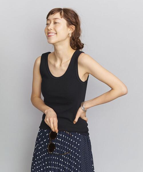 フィット感が心地よいテレコ素材のタンクトップ。深めの襟ぐりデザインですっきりと開きをもたせました。体に沿うすっきりとしたシルエットながら、しっかりとした生地感で、インナーとしてはもちろん、一枚着としても活躍します。色違いで揃えるのもおすすめ。店舗へお問い合わせの際は、全国のBEAUTY & YOUTH各店舗まで下記の品名/品番をお申し付け下さい。品名:○BL C/PU TRC TTP 品番:1617-226-5476