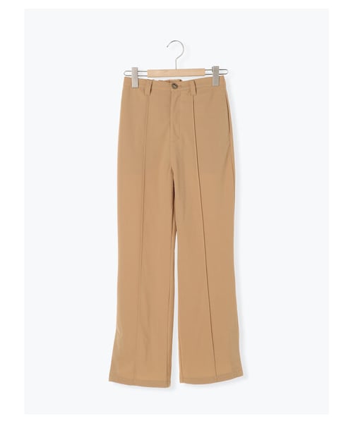 センタープレスが入ったすっきりシルエットのパンツ。 後ろウエスト部分のベルトデザインが、かっちりしすぎないカジュアルさをプラス。 程よい厚みと上品感のある生地でありながら、ストレッチが効いていて穿き心地も抜群です。