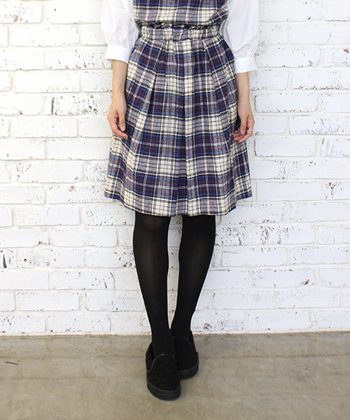 mystic これからのシーズン大注目のチェックスカート。タック入りデザインで、ボリューム感のあるシルエットもポイントです。ウエストもゴム仕様で楽に履いて頂けます。 同柄のトップスと合わせると、ワンピースの様に着こなしが楽しめます♪