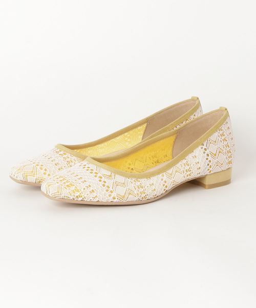 透け感たっぷりの美しいレースが、足元を軽やかかつ繊細な華やぎで盛り上げるパンプス。すっきりとしたスクエアトゥでスタイリングの鮮度を高めてくれそう。歩きやすいヒール高だからデイリーユースにもしっかり対応。