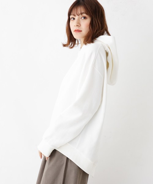 【デザイン】後ろ長めの裾にスリットを入れた、女性らしさとシャレ感のあるプルオーバー。スタイリングにカジュアルなムードを添える、フード付きのデザインです。ゆったりとしたドロップショルダーがこなれた雰囲気を演出。着丈は、ヒップラインをカバーしてくれる安心の丈感です。【生地感】季節問わず快適に着こなせる、肌触りの良いコットン(綿)マテリアルを使用したアイテムです。モデル情報:身長168cm B75 W58 H85 着用サイズ:02(M)店舗へのお問い合わせ商品番号:768-11359●製品寸法:02(M):着丈70cm B110cm 袖丈54cm 肩幅55cm03(L):着丈72cm B114cm 袖丈55cm 肩幅56cm備考: