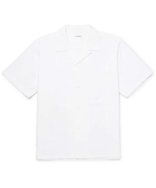 Mr Eiichiro Homma picked up his technical knowledge of fabrics while working as a designer for a leading Japanese sportswear brand, and now he applies his expertise to nanamica's wardrobe staples. This 'Wind' shirt is made from a crisp cotton-blend that's woven using core-spun yarns for extra strength and durability. It's cut with a boxy profile and a '50s-inspired camp collar.