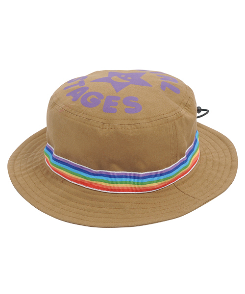 XGS2013FALLのSMILEY HATと同型。レインボーテープ部分にスピンドルゴムの調節機能付き。キラッキープリント入り。