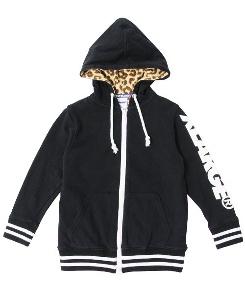 アーム部分のロゴやライン使いでスポーツムードに。インナーにレオパード柄を仕込んで遊びをプラス。