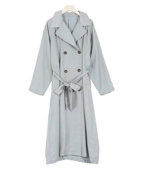 スプリングコートで一着は持っていたいトレンチコート。ほのかに光沢感のあるシャイニー素材が、春らしくさわやかで大人な雰囲気を醸し出します。ツイル素材でお仕事でもカジュアルシーンにも着こなしやすいアウターです。【素材・サイズ感】滑らかな質感でとろみのある素材。ベーシックデザインでどんなコーデとも相性抜群です。ゆったりとしたシルエットの足元まであるロングな丈感が嬉しいポイントです。