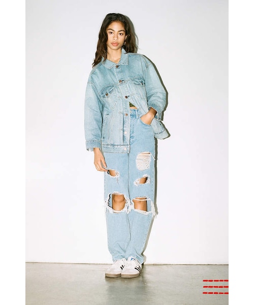 Throwback-style high-rise jean from UO's original staple label, BDG. Built from a vintage-look light wash denim with a slouchy, relaxed fit through the straight leg that puddles at the ankle. Destroyed at the leg with 5-pocket styling and a zipper fly. **Content + Care** \- Cotton \- Machine wash \- Imported **Size + Fit** \- Super high rise \- Straight leg \- Full length \- Model is 5’8" and wearing size 27 \- Measurements taken from size 27 \- Waist: 28" \- Rise: 12.4" \- Inseam: 31.5" \- Leg opening: 16"