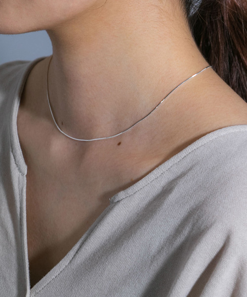 【シンプルに仕上げたシルバーネックレス】 Silver925を使用して作られたシンプルなデザインのネックレス。素肌に沿うような華奢なスネークチェーンは、どんなスタイリングにも合わせやすいデイリーに活躍するアイテムです。※メッキ製品は変色してしまいがちです。こまめなお手入れで防止してください。アレルギー体質の方や体調が低下している方など、かぶれることがありますので十分にご注意ください。※アクセサリーは壊れやすいものです。取扱いにご注意ください。※その他お取り扱いに関しましては、商品に付属のアテンションタグをご覧ください。