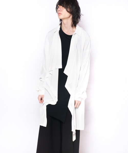 【ブランドヒストリー】東京のストリートシーンは今迄にも幾つもの時代を創って来た。それは過去も未来も変わる事の無い普遍的なもの。GGDはクリエイティブな発想を武器にその時代が創り出すカルチャー、ブームを表現していきます。他の追々を許さないテーラードジャケットを筆頭に、インナー、シャツ、パンツまでこだわり、計算されたシルエットは幾通りものスタイルを可能にする【デザイン】大胆に前身頃オープンにしたデザイン。ドレープ感がモードを演出してくれます。【ファブリック】上質な日本製ポリエステル素材による薄手で軽い着心地の生地感で、柔らかい光沢感と滑らかな肌触りが上品な雰囲気を醸し出しています【スタイリング提案】スキニー・レギンス系でキッチリ感が出るIラインのスタイリングはもちろん、ワイドパンツやスカートと合わせてメリハリを出すのもオススメです。シンプルにそのままでもジャケットやコートのインナーとしてもロングシーズン活躍してくれる1枚です。【特徴】透け感 : 無し裏地 : 無し光沢 : 有り生地の厚さ : 薄い伸縮性 : 無し※スタジオ及び屋外での撮影画像は、光の当たり具合で色味が違って見える場合がります。またご覧いただきますモニターや使用環境により実際の商品と多少色味が異なって表示される場合がございます。予めご了承をお願いいたします。【お買い物を便利にご利用頂くために】▼商品のお気に入り登録完売カラーの再入荷通知、ラスト1点の通知、セールの通知を受け取ることができます。▼ブランドのお気に入り登録新作入荷や再入荷など、ブランドのお得な情報をいち早く受け取ることができます。※他のキャンペーンにより、期間中に価格が変動する場合があります。※セールは予告なく終了させていただく場合もあります。