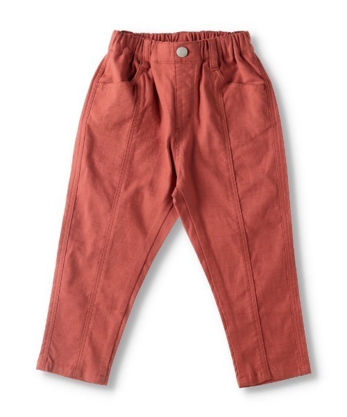 滑らかで少し光沢感のある素材を使用し、センターシームのデザインがポイントとなったカジュアルからキレイめまで幅広く使えるデザインです。お子さまの成長に合わせ、また春~夏までロングシーズン使えるクロップドパンツはおすすめアイテムです。8分丈設定となります。